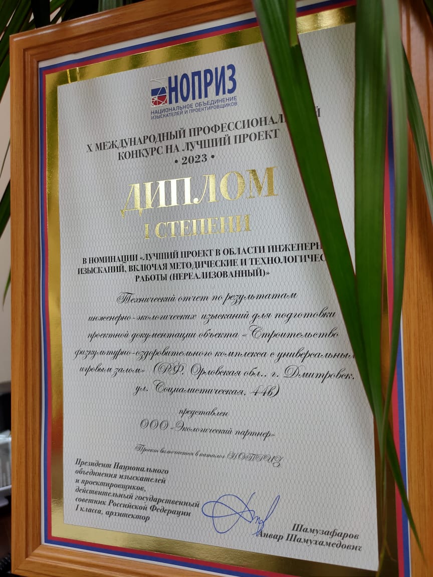ЭКО партнер - дипломант конкурса НОПРИЗ на лучший проект 2023
